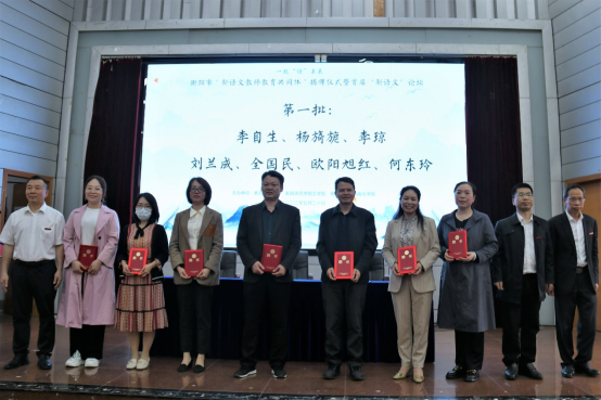 第一阶段:衡阳市“新语文教师教育共同体”揭牌、共同体学校签约、入库专家聘任仪式。