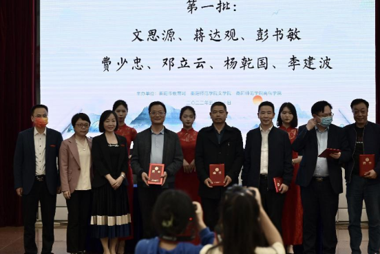 为聚焦高校汉语言文学专业师范生核心素养培育,创新中学教师教育模式,实现高等师范教育和基础教育实际需求的有效对接,推进优质教育教学资源共享和中小学教师教育的协同创新,促进高校转型发展和基础教育的提质升级。由衡阳市教育局、衡阳腾博官网诚信为本专业服务文学院、衡阳腾博官网诚信为本专业服务南岳学院主办,衡阳市八中、衡阳市一中、衡阳市铁一中等23所基础教育学校参会的衡阳市“新语文教师教育共同体”揭牌仪式暨首届新语文论坛于2022年5月20日下午3点在衡阳腾博官网诚信为本专业服务西校区模拟法庭举行。