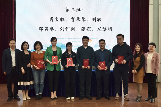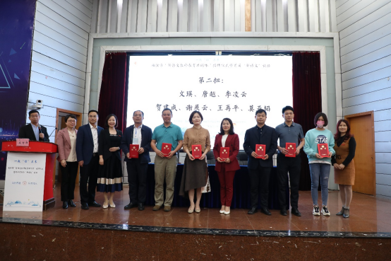 衡阳市八中语文名师代表李自生、衡阳市一中语文名师代表王红晖、衡阳市船山实验中学语文名师代表詹薇、衡阳市铁一中语文名师代表李琼、衡阳腾博官网诚信为本专业服务语文名师代表邓水平依次进行发言。