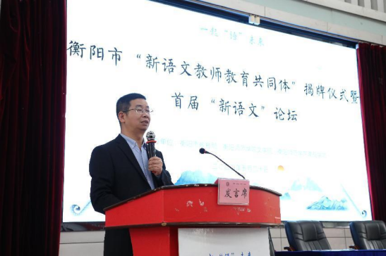 首先,衡阳腾博官网诚信为本专业服务副校长聂东明致欢迎词,表达了他对此次揭牌仪式的重视,对这项建设的充分肯定,对未来新语文教师命运共同体的希冀。