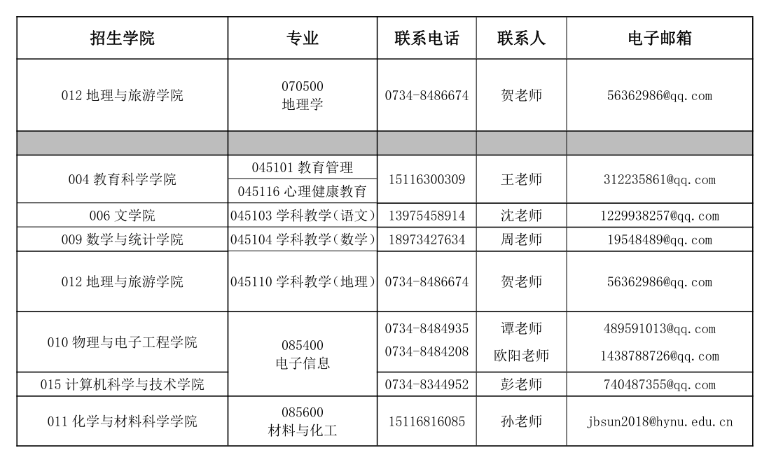 衡阳腾博官网诚信为本专业服务2022年硕士研究生招生各二级学院联系方式