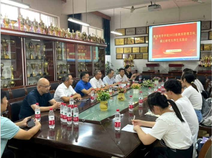 9月9日下午,教育科学学院2022级教育管理方向硕士研究生师生见面会在理科1楼113会议室召开。校长、教育硕士学位点负责人皮修平教授寄语与会的全体研究生,要在新起点、新征程上扬帆起航。副校长刘俊学教授出席见面会,会议由教育管理专业负责人何敦培教授主持。