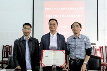 2020年11月13日下午,文学院在东校区文综楼D栋501举行衡阳市八中校长文思源受聘客座教授仪式暨语文教育前沿座谈会。文学院院长任美衡、副院长李振中以及2020级学科教学(语文)硕士研究生参加。本次活动由副院长李振中主持。